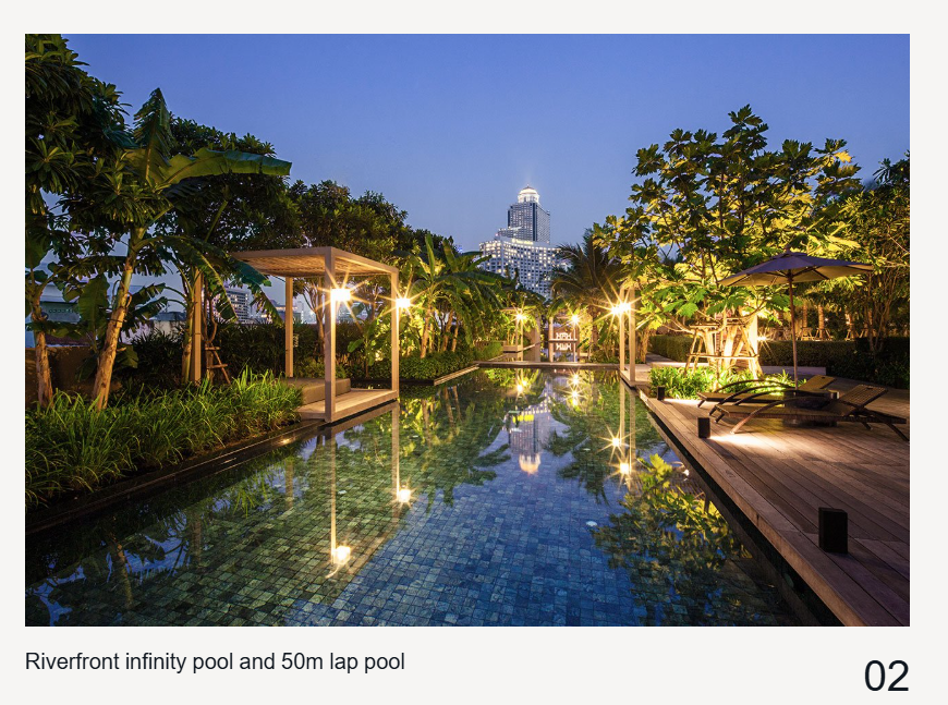 The River, located on the banks of the Chao Phraya River. Just 600 meters from Icon Siam shopping center. Designed for those who appreciate comfort and luxury for executives or families who desire a high quality lifestyle in a prestigious location.